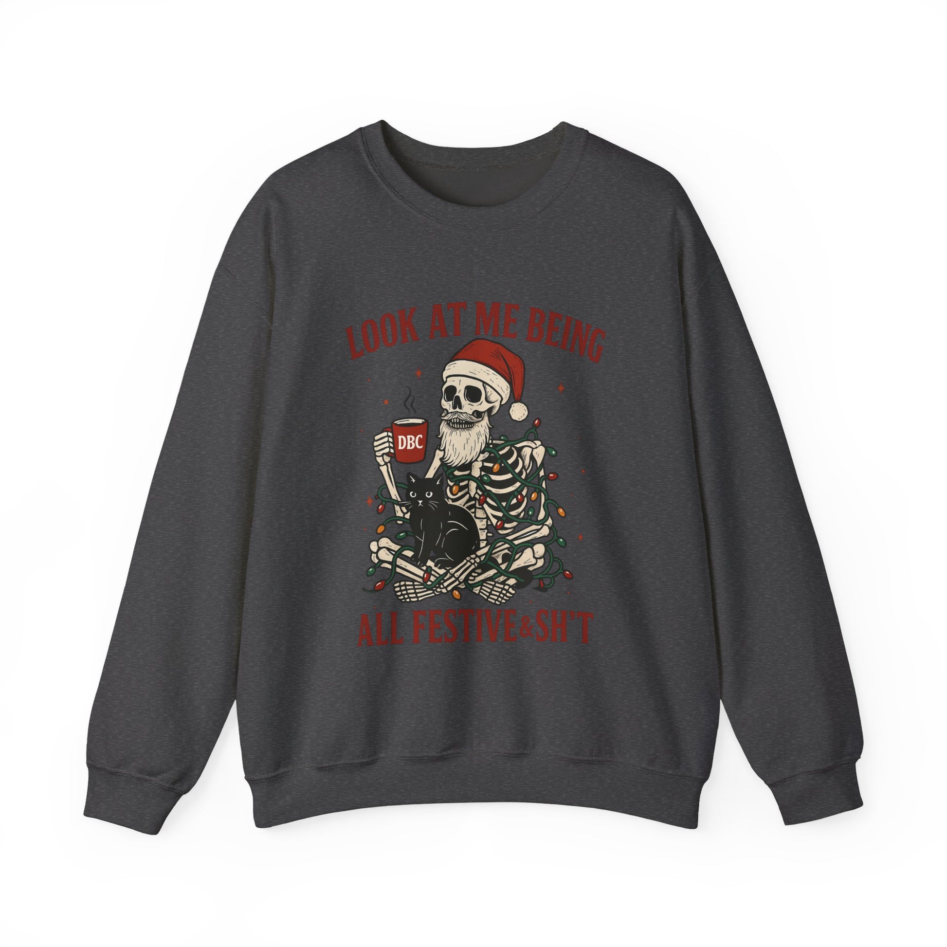 "Look at Me Being All Festive & Sht" Skeleton Christmas Sweatshirt